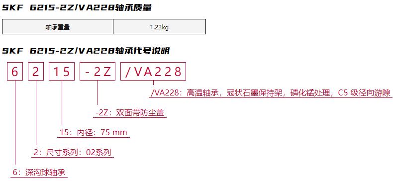 SKF 6215-2Z/VA228軸承屬于用于高溫應(yīng)用場(chǎng)合的單列深溝球軸承,需要進(jìn)行跑合:No。