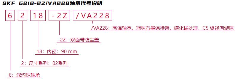后綴列表:【-2Z:雙面帶防塵蓋】【/VA228:高溫軸承,冠狀石墨保持架,磷化錳處理,C5 級徑向游隙】。