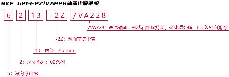 后綴列表:【-2Z:雙面帶防塵蓋】【/VA228:高溫軸承,冠狀石墨保持架,磷化錳處理,C5 級徑向游隙】。